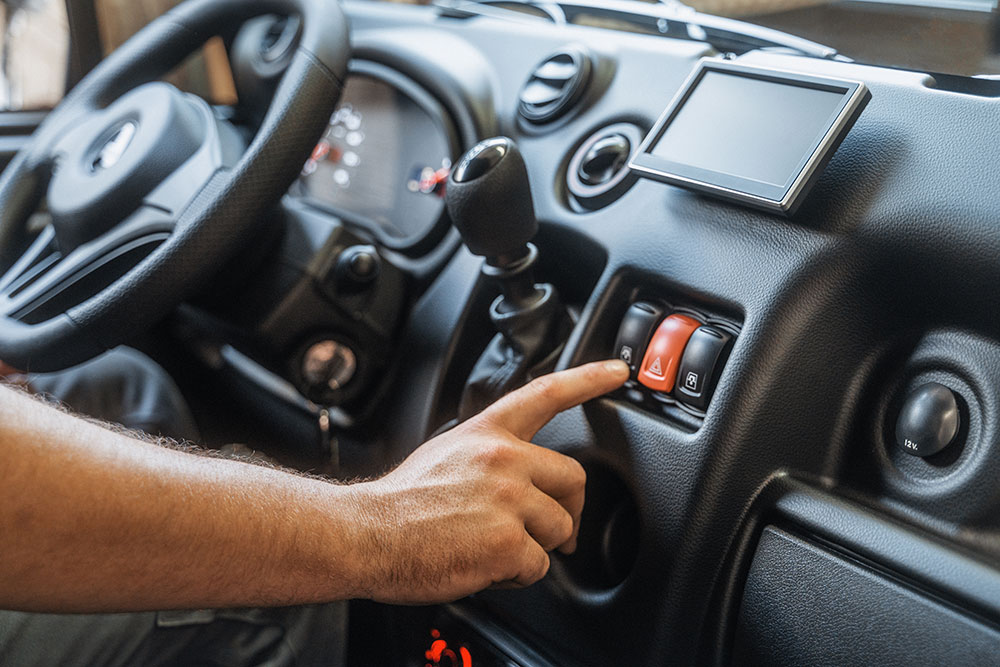 12 Volt Steckdose, Ablagefächer in Türen und vor Beifahrersitz, Abschließbarer Tankdeckel, Armaturenbrett mit moderner, Automobil-Spritzgusstechnik, Außenspiegel links und rechts, Ersatzschlüssel, Fußmatten aus Gummi, Handschuhfach mit Münz- und Getränkehalter, Heckfenster in der Kabine, Hecktüren abschließbar, Heizungslüftung mit zwei Stufen, Innenbeleuchtung mit Türkontaktschaltern, Innenspiegel mit Abblendfunktion, Kopfstützen, LED-Tagfahrlicht, Lenkradschloss, Luftausströmer links und Mitte, Radiovorbereitung, Radzierblenden, Rückfahrscheinwerfer rechts, Nebelschlussleuchte links, Nutzlastbefestigungshaken (4 Stk.), Schalldämmung Fahrgastzelle, Motorraum und Kabinendach, Schalthebel in Armaturenbrett, Scheibenwischer mit Doppelarm