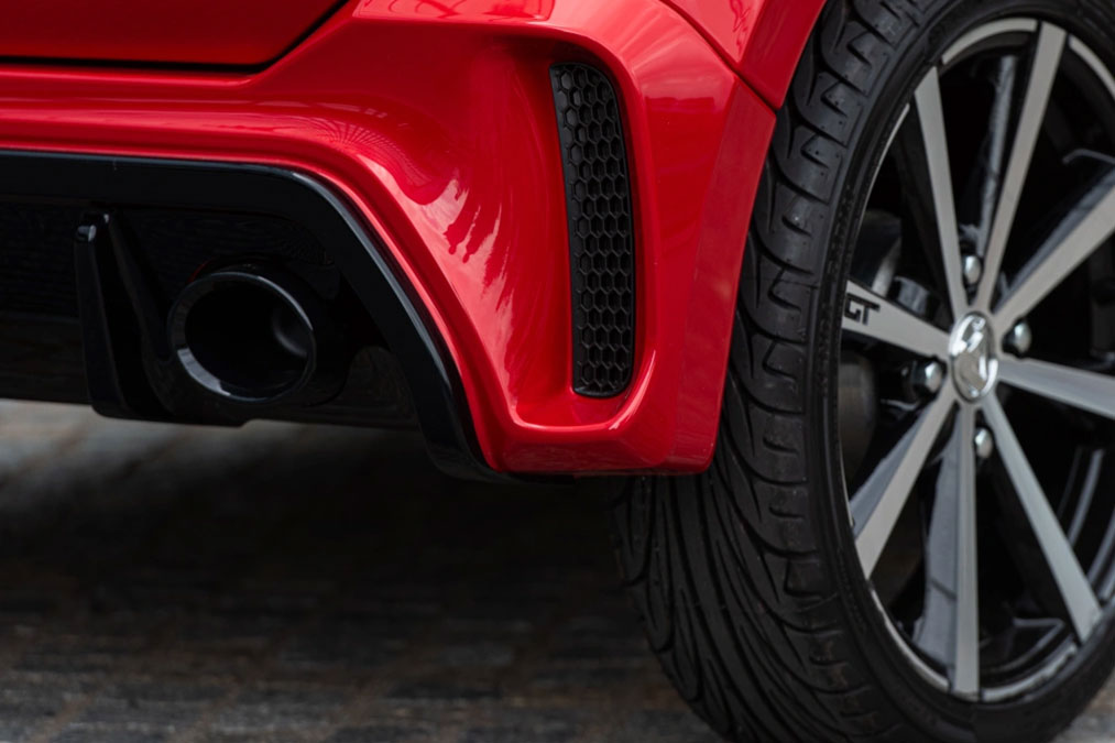 Armaturenbrett schwarz Lederoptik, Armaturenbrett- und Türdekor innen in Wagenfarbe (nicht bei titanmetallic und schwarzmetallic), Armlehnen in Türen mit Stoffpolsterung, Auspuff-Doppelendrohr-Dekor, schwarz glänzend, Außenspiegelschalen schwarz glänzend, Dach, A-Säule und ggf. Heckspoiler in schwarz glänzend, Dekorelemente Heckklappe zwischen Rückleuchten schwarz glänzend, Frontschürze exklusiv GT, Gitter seitlich in Frontschürze, Heckspoiler, Innenverkleidung A-Säule in Stoff und B Säule in Kunststoff, Innenverkleidung A- und B Säule in Kunststoff, Kombiinstrument-Dekor verchromt, Kühlergrill Design Wabengitter schwarz glänzend nur für GTO/GTI, Lenkraddekor in Carbon Look, Paket GT: -Außen: Frontschürze GT mit Wabengitter Elementen in schwarz glänzend (Lufteinlassgrill, Blenden li. + re. Kühlergrill, Diffusor), Außenspiegelschalen und Türgriffe in schwarz glänzend, Emblem “GTO oder “GTI” Heckklappe, Bremssättel vorne in blau. -Innen: Sitze GT, Luftausströmdüsen verchromt, Türgriff in schwarz glänzend, Lenkrad- und Schalthebeldetails in Carbon Look, Sicherheitsgurte und Tacho-Hintergrundbeleuchtung in blau, Fußmatten mit blauem Schriftzug, Türgriffe außen in schwarz glänzend