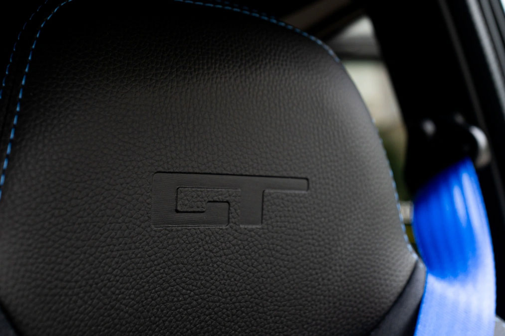 Ablagefach in Türen und Armaturenbrett auf der Fahrerseite, Dachhimmel in Stoff, Fußmatten schwarz mit Stickereien und gesäumt, Gepäcknetz im Kofferraum, herausnehmbar, Gepäckraumabdeckung und Gepäckstopp, Haltegriff Fahrer- und Beifahrerseite, Handschuhfach mit Münz- und Getränkehalter, Innenbeleuchtung LED mit Zeitverzögerung, Kofferraummatte verstärkt in Stoff, Luftausströmer einstell- und regulierbar, mittig, Luftausströmer einstell- und regulierbar, rechts und links, Mittelkonsole mit Getränke- und Becherhalterung, Mobiltelefonablagefach, Rückspiegel mit Abblendfunktion, Schalldämmung Motorraum Stufe 3, Sicherheitsgurte Automatik, Sitz Beifahrer Rückenlehne einstellbar, Sitz Fahrer in Längsrichtung und Rückenlehne einstellbar, Sitze in Sportausführung mit integrierten Kopfstützen in Kunstleder schwarz mit blauer Steppnaht und mit Logo GT, Sitzgestell Verkleidung seitlich, Sonnenblende mit Schminkspiegel, Trennwand Fahrgastzelle / Kofferraum