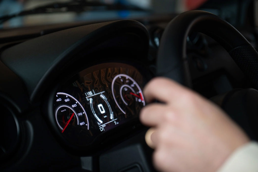 Akustische Warnanzeige für Bremsbelagverschleiß, Anzeige des eingelegten Gangs D-N-R, Kombiinstrument mit einstellbarer Helligkeit, LCD-Bildschirm 1 Zoll, Tankreserveanzeige mit Nadel und Warnanzeige, Wartungsanzeige