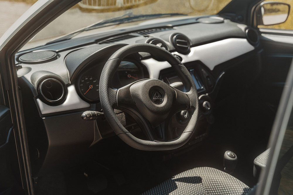 Ablagefach in Türen und Mittelkonsole, Armaturenbrett in Wagenfarbe, Außenspiegelschalen schwarz glänzend, Fensterheber elektrisch, Gepäckstopp, Haltegriffe Beifahrerseite, Innenbeleuchtung LED, Luftausströmer einstell- und regulierbar, mittig, Einschlüsselsystem Türen/Zündschloss/Tankdeckel, Sitz Fahrer Längsrichtung und Rückenlehne einstellbar, Sonnenblende Beifahrer, Sonnenblenden mit Schminkspiegel Fahrerseite, Steckdose 12V (bei Tablet Radio stattdessen USB-Anschluss), Türgriffe außen schwarz samt, Zentralverriegelung mit Fernbedienung und optischer Blinker-Rückmeldung